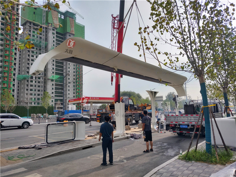 在城市建设的脉搏中,公共设施不仅是功能载体,更是一座城市人文精神的表达。宿迁大昌城市智能科技有限公司倾力打造的河北地区异形公交站亭项目,以创新设计、精湛工艺与高效服务为核心,为燕赵大地增添了一抹兼具艺术美感与实用价值的城市风景。现将从生产到落地的全流程呈现如下,展现我司对品质的执着追求。